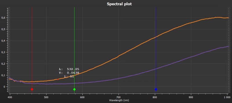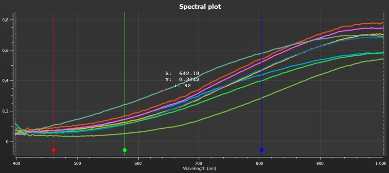 Спектральные данные, полученные с помощью камеры Specim FX10, не показали достаточных различий между кофейными зернами и загрязняющими веществами. Анализ спектров выявил минимальную дифференциацию, что затрудняет надежное разделение этих материалов.