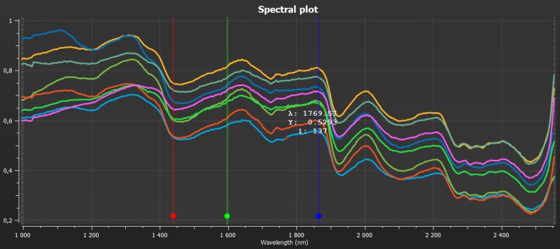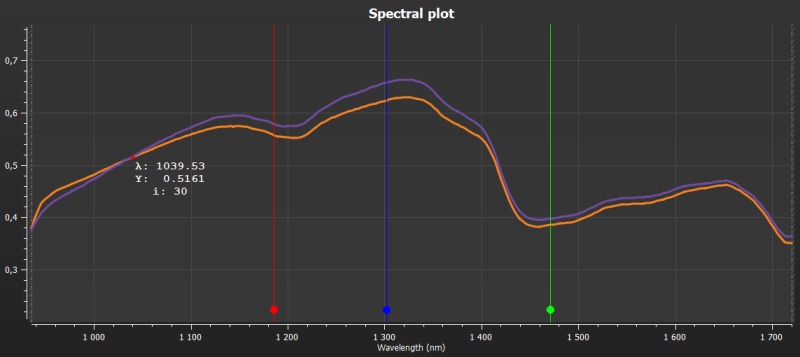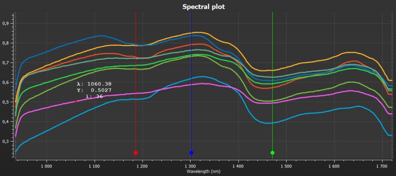 Стоит отметить, что спектральные различия между материалами можно еще больше подчеркнуть с помощью соответствующих методов предварительной обработки данных. Кроме того, выделение спектральной области интереса (ROI), охватывающей только наиболее информативный диапазон, демонстрирует дополнительное преимущество камеры Specim FX.