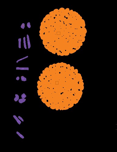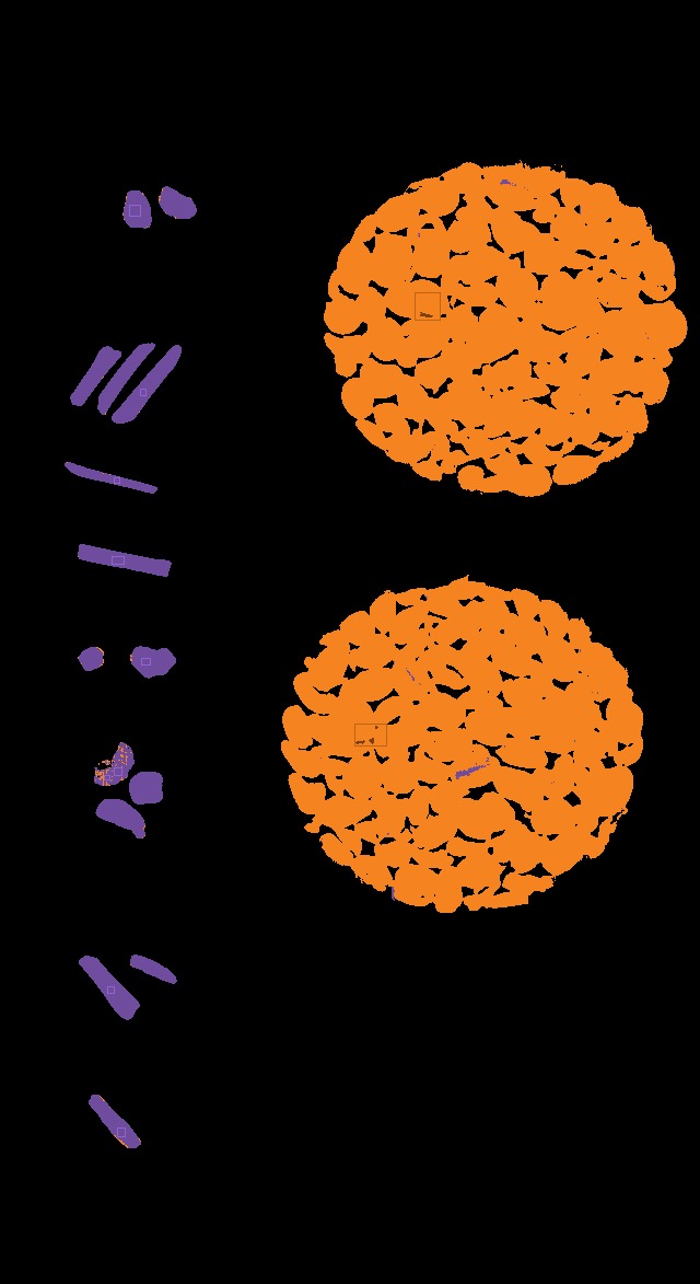 Рисунок 8: прогноз, основанный на модели Specim SWIR (оранжевый для бобов и фиолетовый для загрязняющих веществ)