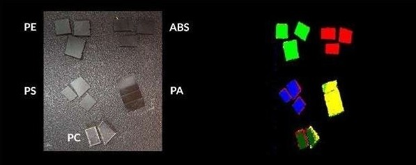 Рисунок 2 - Образцы PS, ABS, PE, PA и PC, отсортированные с помощью Specim FX50.