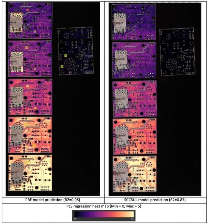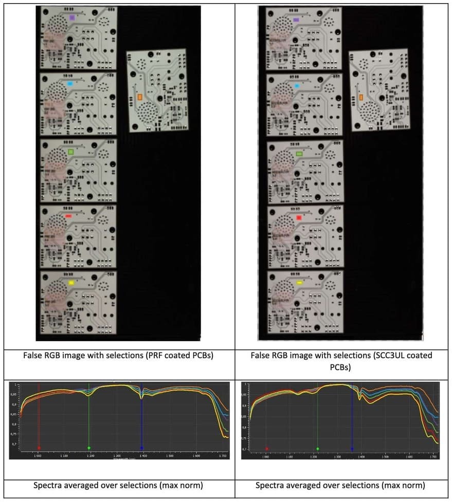 Результаты исследования демонстрируют, что камера Specim FX17 представляет собой эффективный инструмент для контроля однородности и толщины защитных покрытий, наносимых на печатные платы. Кроме того, камера позволяет с высокой точностью определять количество слоев покрытия.
