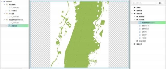 - Анализ общего азота: (чем выше интенсивность цвета, тем выше относительная концентрация) Повышенное содержание наблюдается на границе водоема и во внешнем речном канале, а правая часть изображения характеризуется низким содержанием, отображаемым зеленым цветом.