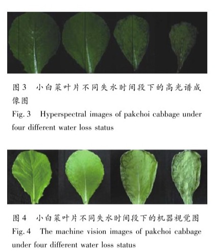 Рисунок 3, 4 - Сравнительный анализ гиперспектрального изображения и изображения машинного зрения листьев пак-чой в разное время обезвоживания
