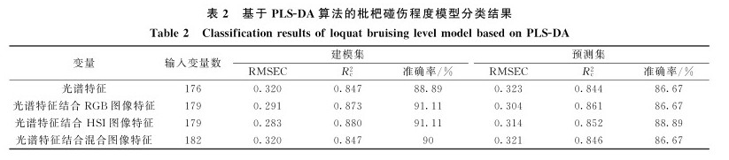 Таблица 2 - Результаты классификации модели степени повреждения мушмулы на основе алгоритма PLS-DA