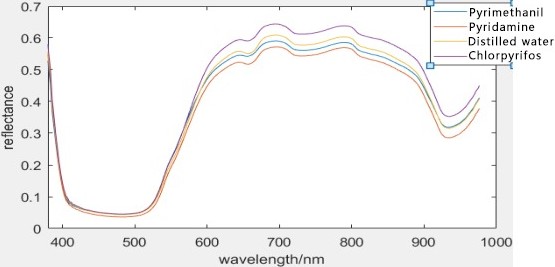 Рисунок 1 - Средний спектр хурмы, обработанной дистиллированной водой и тремя видами остатков пестицидов
