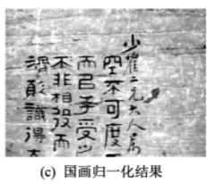 Во-вторых, текстовая информация была извлечена методом плотностной сегментации, что позволило получить бинарные изображения. Однако из-за сильной утраты штрихов на каменных надписях и нечетких контуров символов на изображениях гробниц использование свёрточной нейросети оказалось ограниченным, так как она требует цельных иероглифов для корректного распознавания. Поэтому для этих изображений были применены морфологические преобразования, позволившие создать несколько вариантов формы символов и облегчить экспертную интерпретацию.