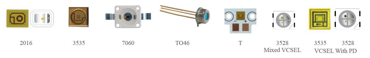 В дополнение к лазерным диодам на 808 нм, Brightlaser также имеет лазерные диоды VCSEL на 850 нм и 940 нм. Различная комплектация диодов, удобство интегрирования, одиночный излучатель или массив излучателей позволяют получить разную мощность и форуму пятна.