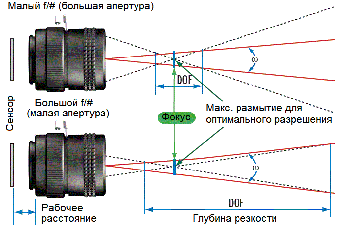 Кинообъективы с малой глубиной резкости, должны обеспечивать высокое качество изображения при низком f / # или крутом угле фокусировки. Чем круче угол света, сфокусированного линзой, тем больше будет сферическая аберрация или вариация расстояния фокусировки по апертуре линзы. Главным препятствием при разработке кинообъективов с малой глубиной резкости является борьба со сферической аберрацией. Высококачественные асферические линзы включены в более крупный узел кинообъективов, чтобы избежать этого.
