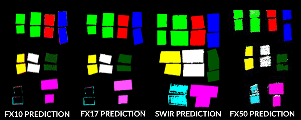 Specim обработали данные с помощью разработанного ими программного обеспечения SpecimINSIGHT, являющегося частью платформы SpecimONE, и построили модели PLS-DA для каждого куба данных. Спектральный диапазон был ограничен камерой FX10 на 700 - 1000 нм, чтобы устранить любые искажения в цвете образца.