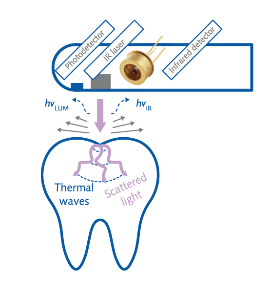 Когда на зуб падает импульсный лазерный луч малой мощности, система измеряет уровень свечения (люминесценции) и тепла (фототермической радиометрии), исходящего от зуба. Лазерное излучение иначе взаимодействует со здоровыми зубами, чем с кариесом. Могут быть обнаружены поражения размером от 50 мкм до 5 мм ниже поверхности зуба.