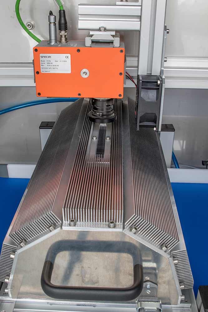 Чтобы сделать доступным этот процесс и достичь необходимой скорости и точности, требуется сложная конструкция всей системы, блоки машинного зрения и связи между всеми компонентами. «Гиперспектральная камера Specim FX10 является центральным элементом системы машинного зрения», - поясняет Стрелен. «Основным аргументом выборы камеры было то, что она охватывает большое количество длин волн в спектре, подходящем для этой задачи. Кроме того, это единственная гиперспектральная камера, которая также подходит для видимого диапазона спектра. Кроме того, имеется совместимость с программными библиотеками LuxFlux, используемыми для классификации и предварительной обработки данных изображения, и программным обеспечением Halcon для принятия решения OK / NOK на основе результатов LuxFlux, компактный размер и, что не менее важно, бюджетная цена камеры».
