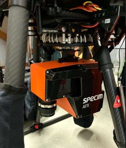 Рисунок 1 - Гиперспектральная камера Specim AFX, интегрированная с дроном Skyfront Parameter 8 для сбора данных в точном земледелии. Предоставлено Alchemy Analytics