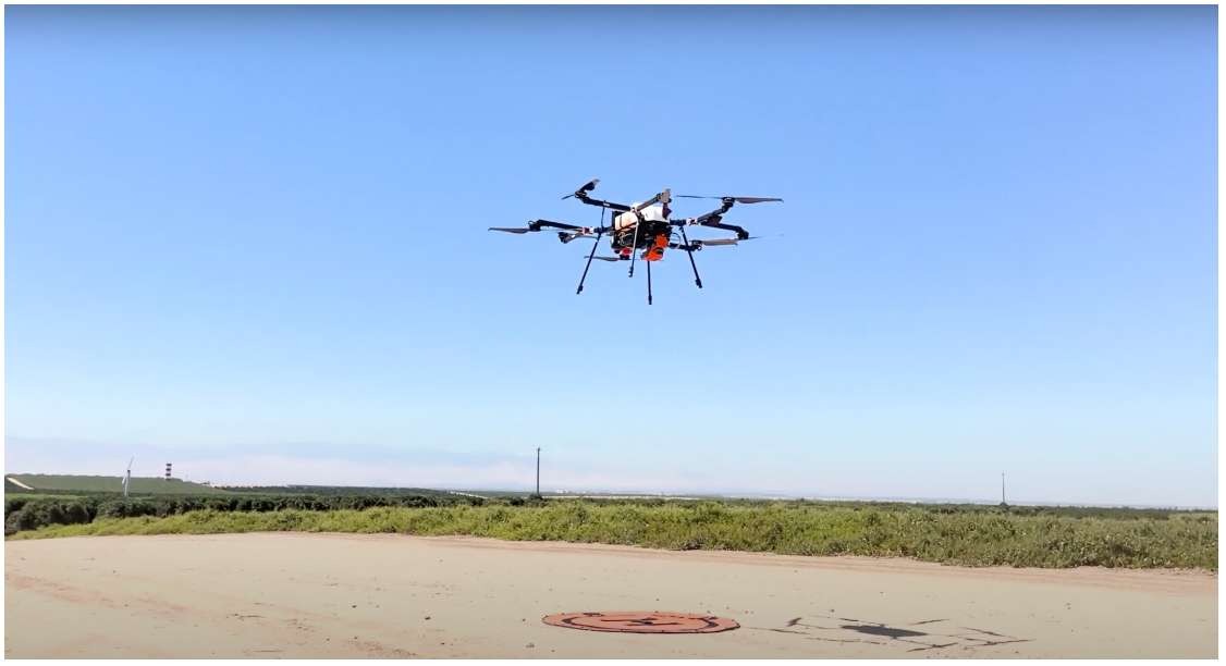 Используйте любой БПЛА, способный нести полезную нагрузку весом 4-6 кг и способный летать по предварительно запланированному маршруту.