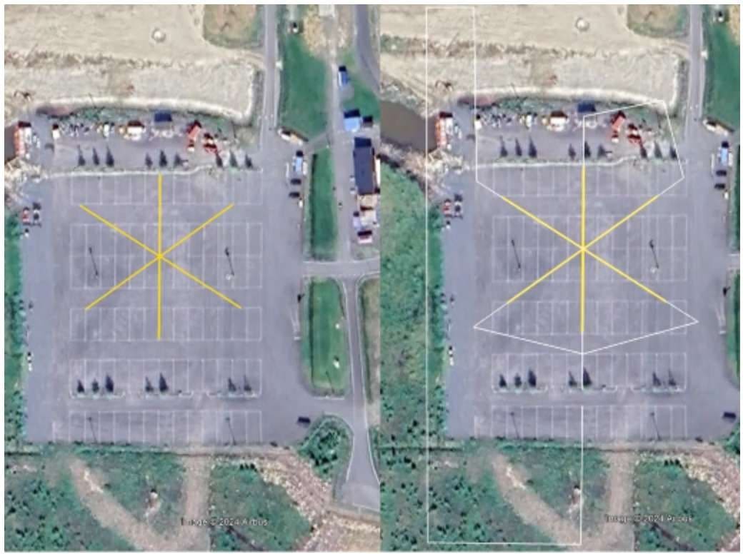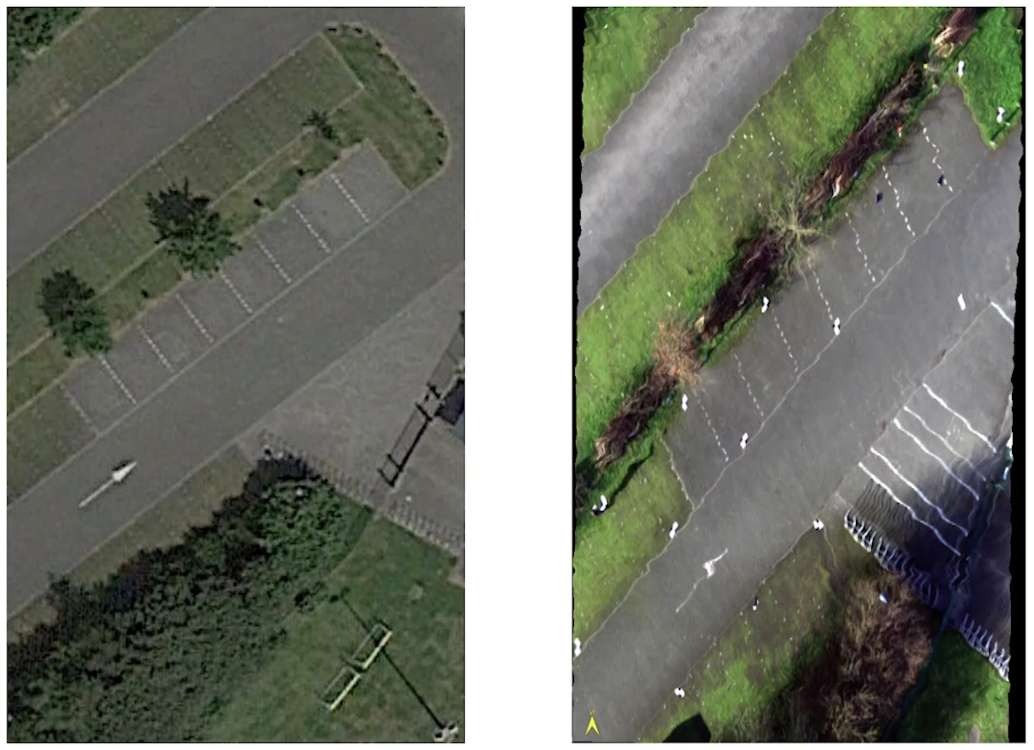 Рисунок 8 - Сравнение размера изображения при выравнивании линий полета Север-Юг (слева) и в других направлениях (справа). Не-Север-Юг линия полета привела к массивному размеру файла по сравнению с линией полета Север-Юг