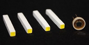 Сцинтилляционные характеристики кристаллов Ce:GAGG, выращенных по методу Чохральского, впервые были изучены в 2011 году. Предварительные исследования энергетического разрешения и временных характеристик GAGG кристаллов были проведены с использованием различных типов детекторов для регистрации фотонов (вакуумные ФЭУ, кремниевые фотоумножители, PIN-фотодиоды). Исследования показали, что кристаллы Ce:GAGG являются очень многообещающими для таких приложений как гамма-спектроскопия и медицинская визуализация. На рисунке 1 показана фотография сцинтилляционных кристаллов GAGG с габаритами 3x3x30 мм3 компании Furukawa , а также детектор на основе Si-ФЭУ с площадью активной области 3x3 мм2 компании SensL. Все грани сцинтилляционных кристаллов были отполированы, а пятая грань каждого кристалла была покрыта белым отражающим покрытием.