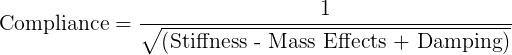 На более высоких частотах податливость полностью зависит от массы (инерции) стола. Для f >> fn, уравнение податливости может быть аппроксимирована как