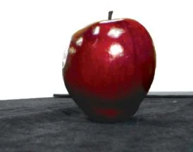 Изображение яблока в видимом спектре. Дефекты практически неразличимы. |