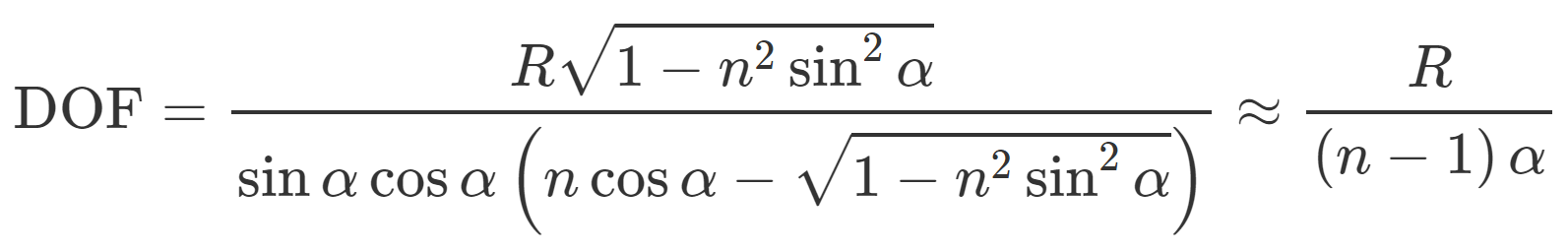 Упрощенное уравнение предполагает малые углы преломления. Диаметр кольца пропорционален расстоянию. Увеличение длины от выходного отверстия объектива до изображения (L) увеличивает диаметр кольца (dr), а уменьшение расстояния уменьшит его. Как математически иллюстрирует уравнение, диаметр кольца приблизительно равняется удвоенному расстоянию, тангенсу произведения показателя преломления (n) и угла альфа (α).