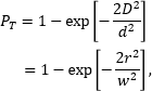 может быть рассчитанна с использованием D и диаметра интенсивности луча 1/e2 (d) или с использованием радиуса зеркала (r) и радиуса интенсивности луча 1/e2 (w).