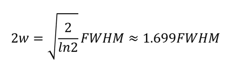 А связана эта величина с FWHM очень просто – из уравнения гауссова пучка можно найти радиус, для которого интенсивность равна половине максимальной, и выделить w:
