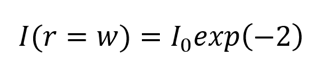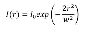 можно увидеть, что если посмотреть на точку, где радиус равен w (следовательно, при теоретическом радиусе ширины пучка), то интенсивность будет равна 1/e2, умноженному на максимальное значение: