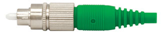Этот разъем имеет такую же базовую конструкцию, что и разъем FC/PC, но конец волокна отполирован под углом. Этот интерфейс с названием «Физический контакт под углом» (APC) предотвращает попадание света, отраженного на стыке волокна с волокном, обратно вверх. Разъемы FC/APC правильно соединяются только с другими разъемами FC/APC. Соединение FC/APC с любым другим разъемом приводит к высоким вносимым потерям. Эти разъемы минимизируют обратные отражения, но имеют более высокие вносимые потери, чем их аналоги FC/PC.