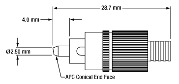 Все разъемы FC/APC обеспечивают минимальное обратное отражение -65 дБ из-за конца APC. Разъемы APC компании Thorlabs отличаются использованием зеленого чехла для снятия натяжения.