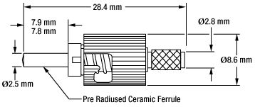 Одномодовый (SM) разъем FC/PC имеет керамический наконечник с предварительно закругленным радиусом (R20 мм), который помогает минимизировать обратные отражения. Разъем FC/PC имеет допуск на размер отверстия +1/-0 мкм и максимальную концентричность 1 мкм.