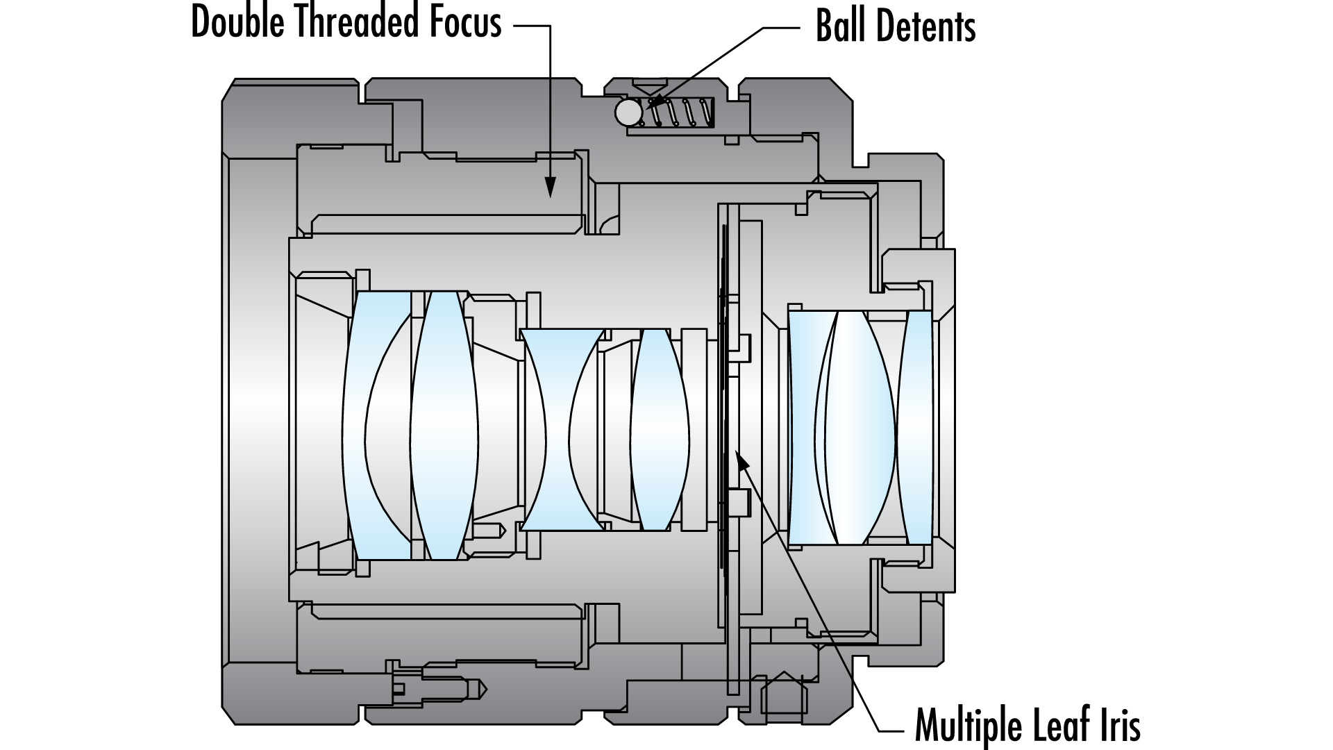 Промышленные объективы повышенной прочности сконструированы так, чтобы выдерживать вибрацию и удары, не повреждаясь при этом, не меняя фокусировки или f/#. Гибкость приносится в жертву путем исключения движущихся частей. Стандартный объектив с фиксированным фокусным расстоянием использует механизм фокусировки и диафрагму, состоящую из тонких пластинок и шариковых фиксаторов, для регулировки f/#, которые могут смещаться во время ударов и вибрации. В промышленных объективах повышенной прочности диафрагма удаляется и заменяется фиксированным упором диафрагмы, а механизм фокусировки, обычно состоящий из механизма фокусировки в виде цилиндра с резьбой внутри другого цилиндра с резьбой, заменяется механизмом с одной резьбой и жестким фиксатором.