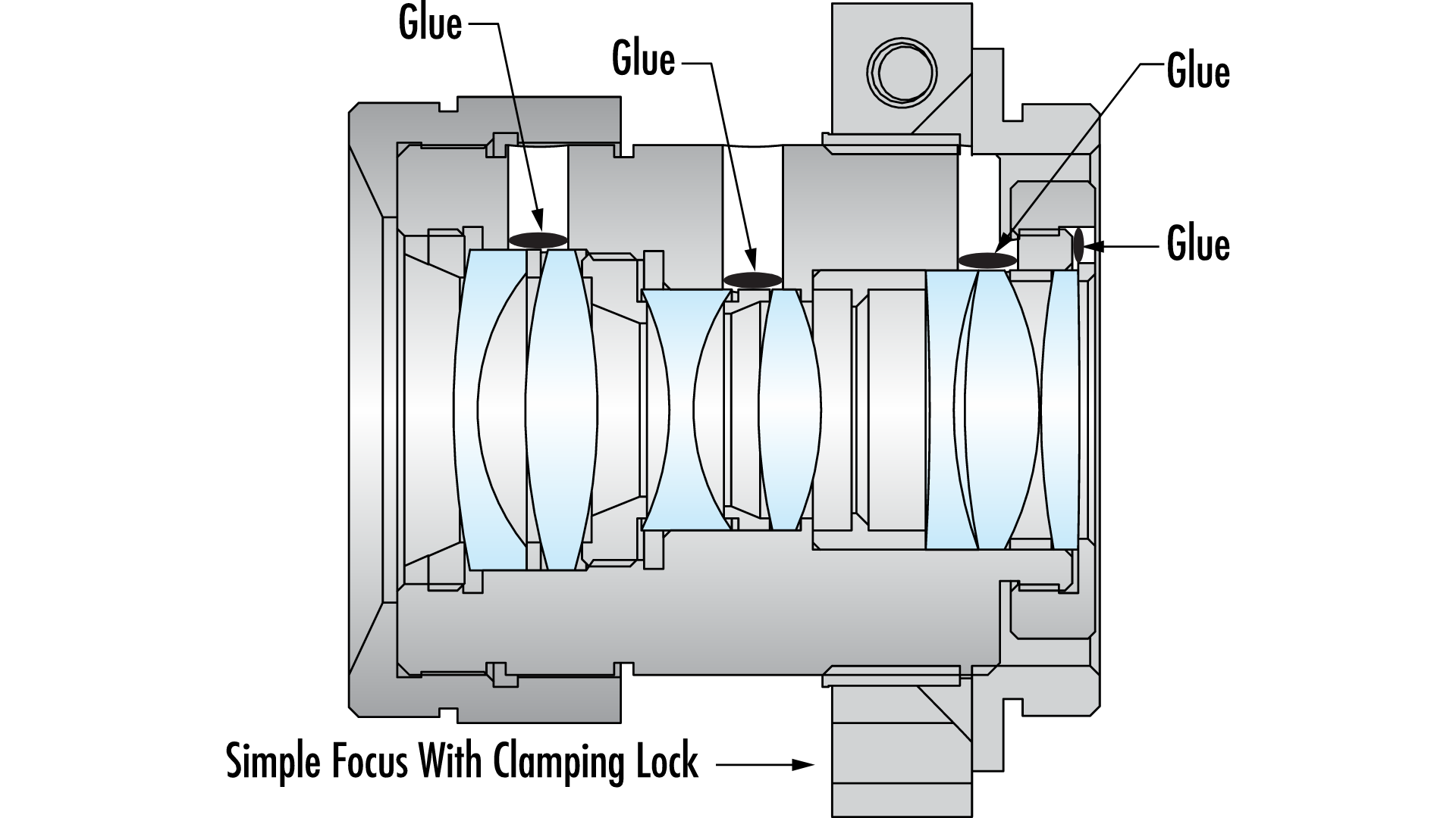 Устойчивый прочный объектив с приклеенными элементами