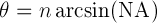 где NA – числовая апертура волокна, а n – показатель преломления (для воздуха n = 1).
