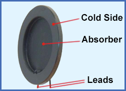 В датчике тепловой мощности мощность падающего лазерного пучка поглощается падающей поверхностью термопары и преобразуется в тепло. Другая поверхность термопары остается холодной, так как она термически связана с радиатором датчика. Температурный градиент между двумя поверхностями зависит от падающей оптической мощности. Следовательно, генерируемое напряжение между горячей и холодной поверхностями пропорционально падающей мощности.