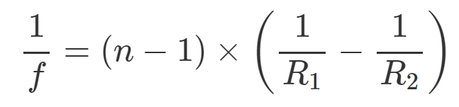 Это уравнение используется для расчета фокусного расстояния (f) линзы. Уравнение показывает, что фокусное расстояние зависит от показателя преломления (n), радиуса кривизны первой стеклянной поверхности (R1) и радиуса кривизны второй стеклянной поверхности (R2). Фокусное расстояние можно уменьшить, увеличив показатель преломления стекла, или уменьшить фокусное расстояние, изменив любой из радиусов кривизны (R). Жидкостные линзы работают за счет электронного управления этими свойствами линз.