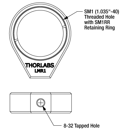 Держатель линз LMR1 с резьбой SM1, подходит для оптики диаметром до 1" и содержит резьбовое отверстие 8-32 |