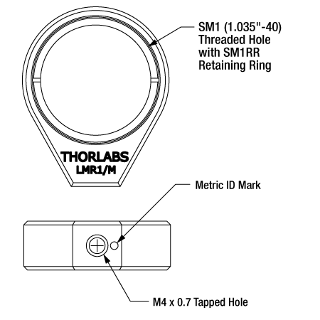 Часто предполагается, что метрическая версия держателя предназначена для оптики с метрическими размерами. Например, существует две версии держателя LMR1 для оптики Ø1": LMR1 с монтажным отверстием с резьбой 8-32 и LMR1/M с монтажным отверстием с резьбой M4. LMR1 разработан для оптики Ø1" (Ø25.4 мм), а LMR1/M разработан для оптики Ø25.0 мм. Фактически, обе модели LMR1 и LMR1/M подходят для оптики диаметром 25.4 мм (и обе используют одно и то же стопорное кольцо SM1RR).