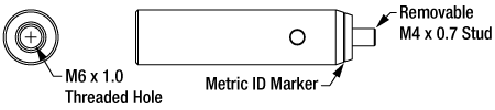 Шпилька 8-32 (M4) в стержнях имеет шестигранную головку, которая подходит для шаровой отвертки 5/64" (2 мм) или шестигранного ключа |