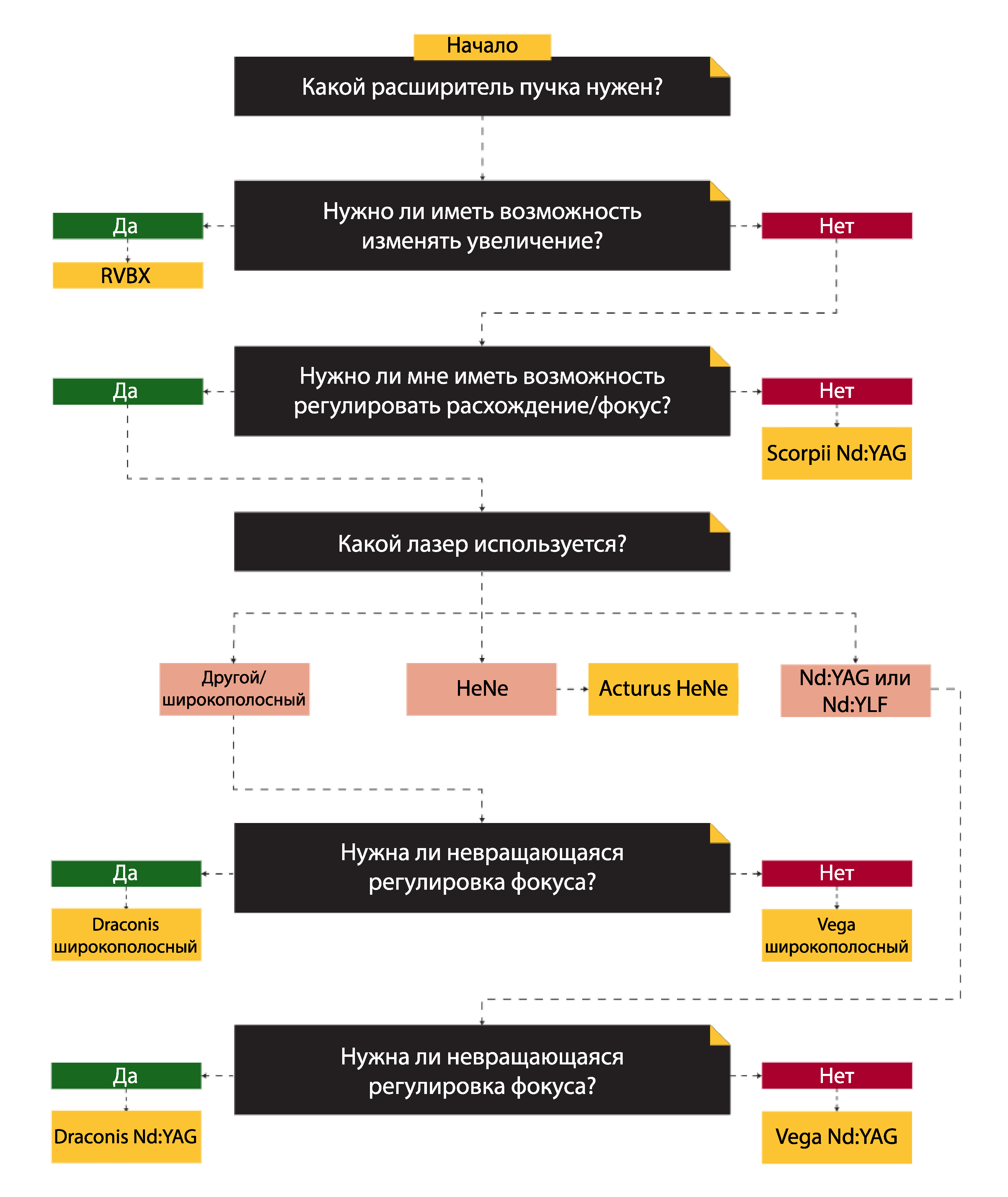 В приведенной ниже блок-схеме представлен визуальный метод определения того, какой расширитель пучка Edmund Optics соответствует требованиям конкретного приложения.