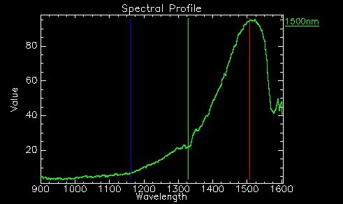 Большинство этих Au-наностержней дают спектральный отклик при длине волны 1500 нм, как показано на рис. 3. Это можно подтвердить с помощью алгоритма классификатора пиковых длин волн в программе анализа гиперспектральных изображений, который сопоставляет каждый пиксель изображения со спектральным откликом на длине волны 1500 нм, как показано на рис. 2. На рис. 4 представлен отчет о распределении классов, иллюстрирующий количество пикселей, отображаемых для данного диапазона длин волн на 1500 нм.
