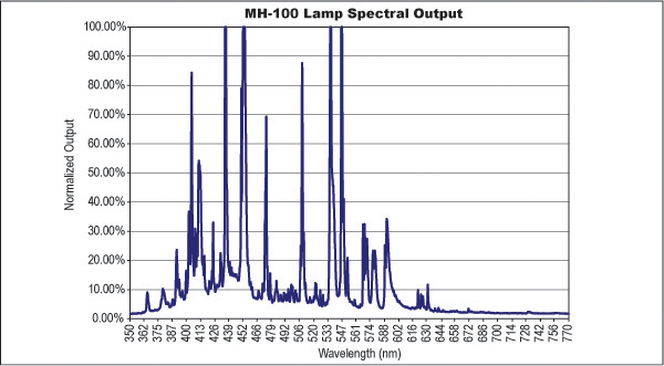 Металлогалогенный осветитель Dolan-Jenner Fiber-Lite® MH-100 поднимает освещение на новый уровень. Он обеспечивает более чем в два раза большую светоотдачу по сравнению со стандартным кварцево-галогенным осветителем мощностью 150 Вт. Он предназначен для получения яркого белого света с истинной цветопередачей и балансом. Особенности включают цветовую температуру 5300K, регулировку интенсивности от 20 до 100% с помощью ручной диафрагмы, низкую температуру корпуса и съемный УФ/ИК-фильтр. После удаления УФ/ИК-фильтра можно использовать весь спектр УФ-БИК металлогалогенных ламп. Кроме того, встроенный держатель внешнего фильтра и доступные закаленные фильтры (диаметр 35 мм и толщина 2,5 мм) позволяют модифицировать спектральный выход осветителя. Оптимизируйте светоотдачу, используя волокна с диаметром сердцевины от 3/8" до ½".