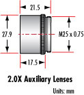 Дополнительный кольцевой адаптер (#56-634) позволяет установить кольцевой световод (#54-173) на объектив (не совместим с нижними модулями Mitutoyo). Адаптер RMS позволяет использовать другие объективы, скорректированные на бесконечность, с нижними модулями Mitutoyo. Конверсионный объектив 2.0X позволяет устанавливать стандартные вспомогательные объективы на нижние модули Mitutoyo. Монтажный зажим можно установить на наши реечные механизмы и монтажные пластины ¼-20 через резьбовое отверстие ¼-20.