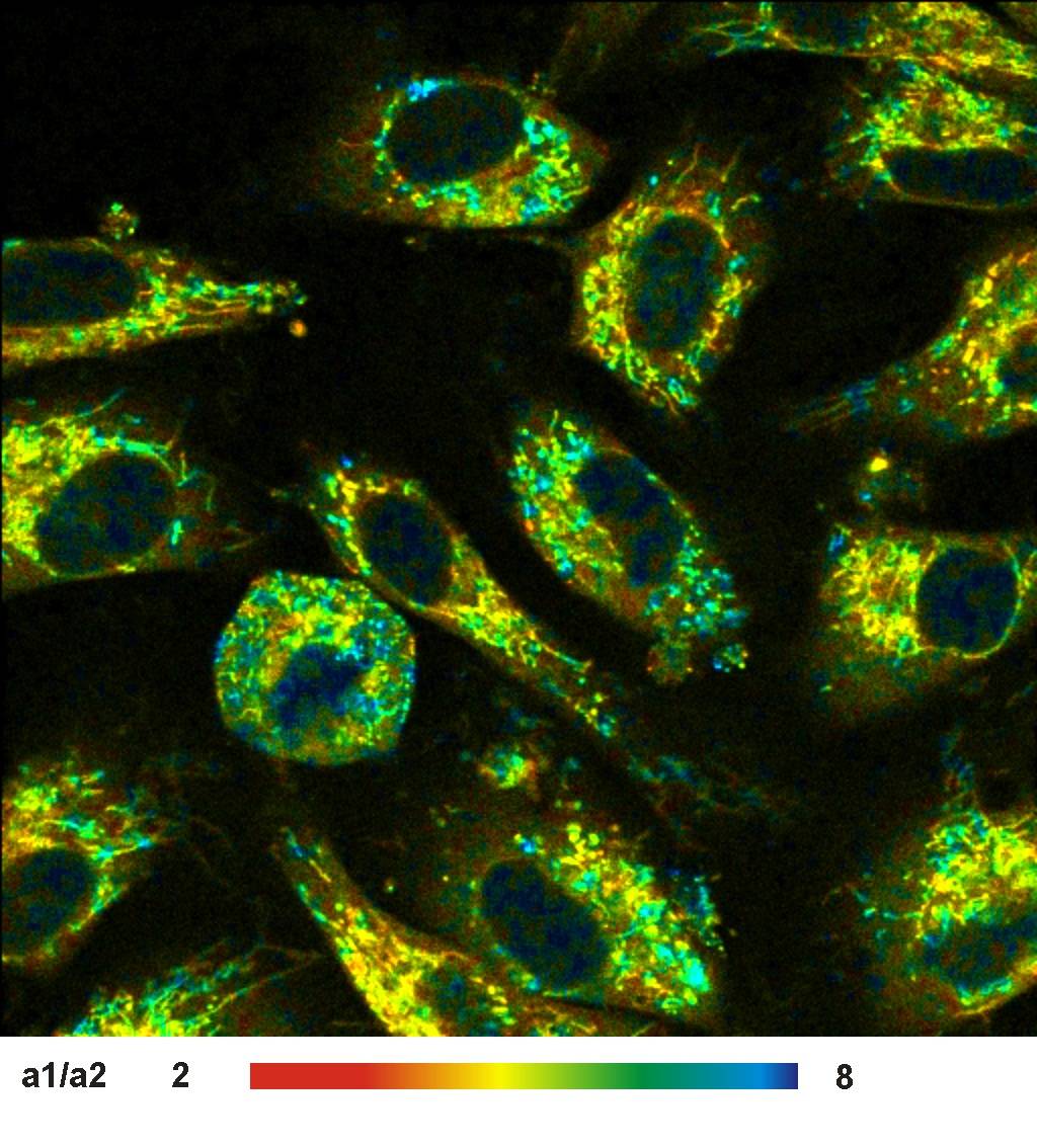 Измерения концентраций восстановленной формы никотинамидаденин динуклеотида (nicotinamide adenine dinucleotide, NADH) методом визуализации времени жизни флуоресценции (fluorescence-lifetime imaging microscopy, FLIM) основаны на разделении компонентов сигнала затухания флуоресценции, относящихся к связанной и свободной формам NAD(P)H. Амплитуда и время затухания этих компонентов используют для получения информации о метаболическом статусе клеток или тканей.