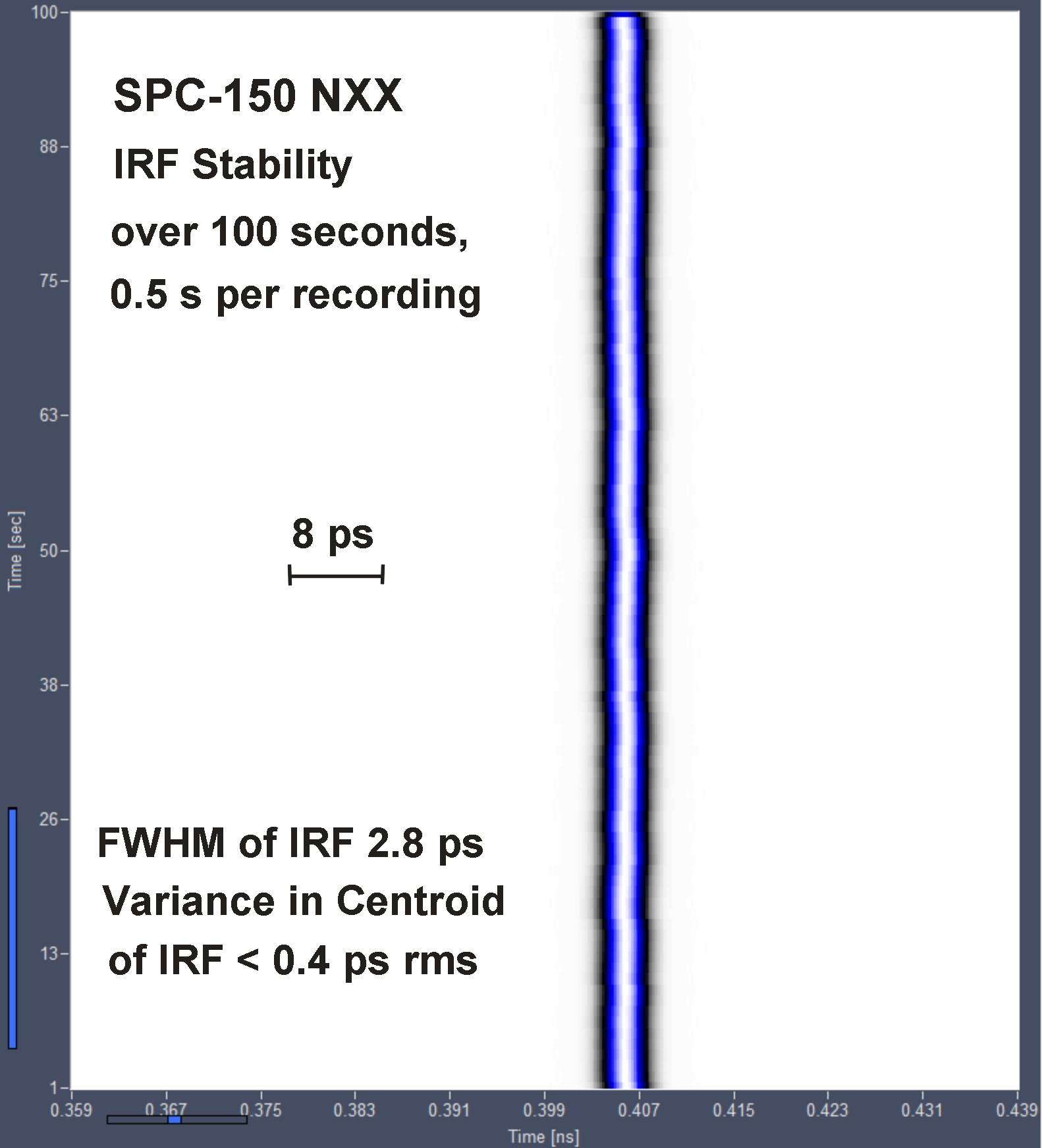 Благодаря сверхпроводящему NbN-детектору с одной нанопроволокой удалось достигнуть полуширины аппаратной функции всей системы порядка 4.4 пс. В дополнение к узкой аппаратной функции SPC-150NXX обладает чрезвычайно высокой стабильностью IRF. Для серии аппаратных функций, записанных в течение 100 секунд, отклонение центра IRF составляет <0.4 пс. SPC-150NXX предлагает полный набор функций семейства TCSPC модулей SPC-150 Becker&Hickl в том числе различные режимы работы: режим гистограммы, режим последовательной записи, FLIM, FCS, пространственный и временной мозаичный FLIM и одновременный FLIM-PLIM. Модули поставляются с программным обеспечением для сбора SPCM данных от Becker&Hickl. Для анализа данных доступно программное обеспечение Becker&Hickl SPCImage.