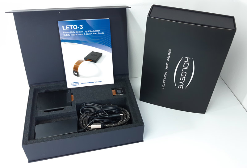 Компания HOLOEYE выпустила крупное обновление для пространственных модуляторов света серии LETO. LETO-3 имеет разрешение 1920x1080 пикселей с шагом пикселя 6.4 мкм. Новый привод отличается более высокой частотой адресации импульсов, что обеспечивает более высокий динамический диапазон для адресации напряжений. Благодаря измененной последовательности и конфигурациям привода стабильность фазы была дополнительно улучшена, а вместе с тем увеличена и дифракционная эффективность.