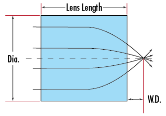 Наши объективы GRIN имеют числовую апертуру 0,55 и доступны с двумя вариантами рабочего расстояния. Линзы с рабочим расстоянием 0 мм идеально подходят для коллимации одномодовых и многомодовых оптических волокон и лазерных диодов, поскольку линзу можно расположить и приклеить непосредственно к источнику излучения. Для задач фокусировки или в случаях, когда объектив не может находиться в прямом контакте с источником излучения, все объективы также доступны с небольшим рабочим расстоянием. Каждая линза доступна без покрытия (потеря отражения примерно 12 %) или с покрытием BBAR для R < 0,5 %.