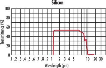 Кремний – популярный материал для диапазона от 1.2 до 7 мкм из-за его низкой стоимости и низкой плотности. Из-за своей низкой плотности (вдвое меньшей, чем у селенида германия или цинка), кремний идеально подходит для чувствительных к весу применений, особенно в области 3-5 мкм. Плотность составляет 2.33 г/см3, а твердость - 1150 по Кнупу, что делает его более твердым и менее хрупким, чем германий.