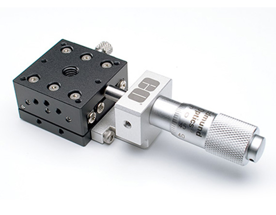 Линейный транслятор на перекрестных роликовых подшипниках, со сквозным отверстием, размер: 30 x 30 мм, перемещение: 13 мм, метрический микрометр на торце, Edmund Optics