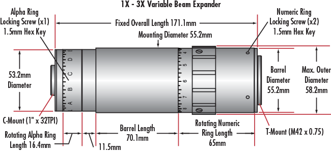—Регулируемый расширитель лазерных пучков, покрытие для линии лазера 355 нм, расширение луча: 2X-8X, Edmund Optics