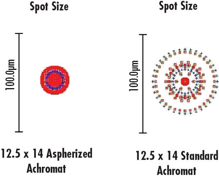 Асферические ахроматические линзы с коррекцией сферических аберраций TECHSPEC® устраняют разрыв между ахроматами с коррекцией цвета и асферическими линзами с коррекцией сферической аберрации, что приводит к созданию экономичных асферических компонентов с коррекцией цвета. Дуплетные линзы TECHSPEC® состоят из двух склеенных элементов, которые согласованы по их способности коррекции цвета и небольшому среднеквадратичному размеру пятна.