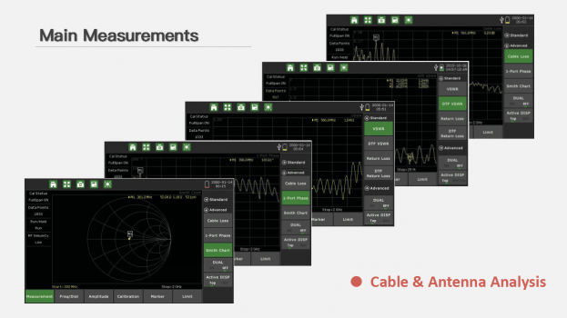 - Анализатор кабелей и антенн: 2 МГц - 4,4 ГГц;