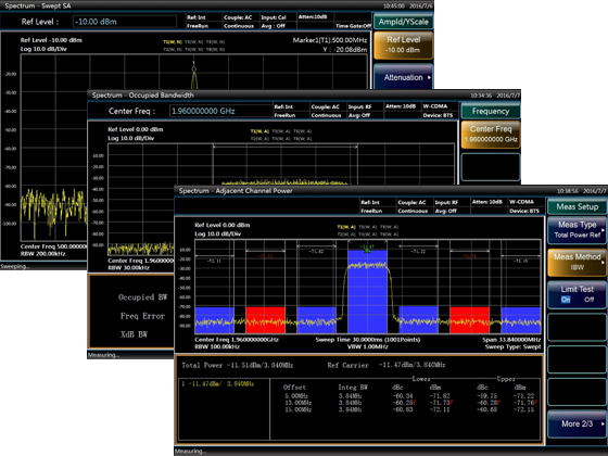 - Функции тестирования занятой полосы пропускания, мощности канала, проверка мощности соседнего канала